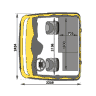 CP19, de tipo frontal con dormitorio, construida en acero galvanizado y posee suspensión neumática en dos puntos, volante ajustable en altura y